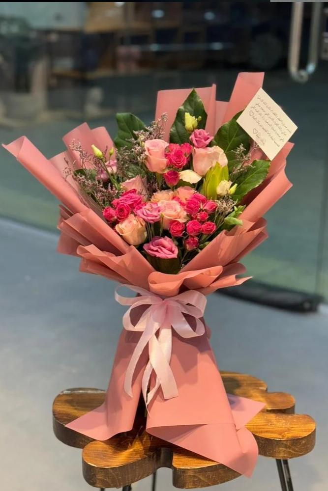باقة ورد مكس جوري وبيبي روز مكونه من جوري وبيبي روز