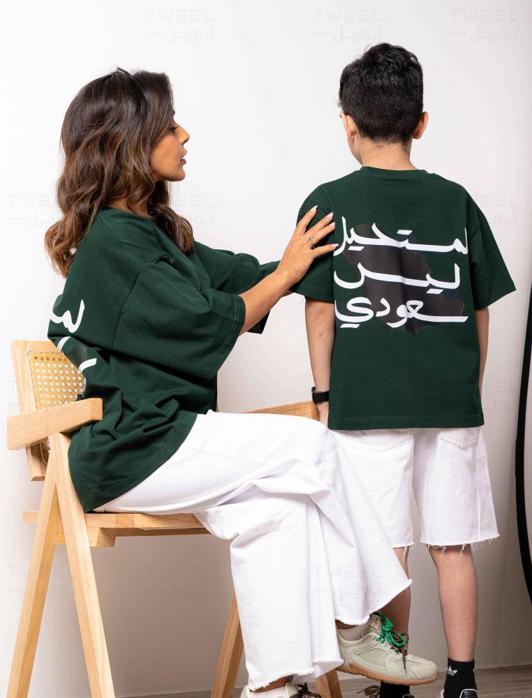 تيشرت المستحيل ليس سعودي - أخضر مع خريطه الون كحلي